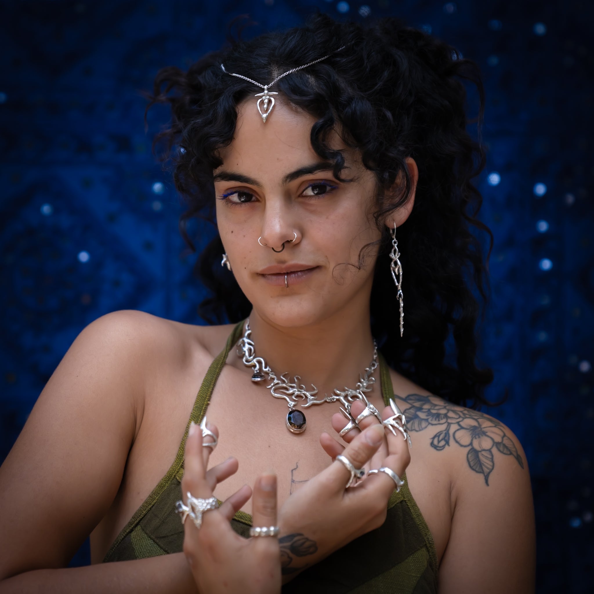 Each piece is hand-sculpted from solid sterling silver, and it’s my way of showing the world that darkness isn’t the absence of light but where true beauty begins.